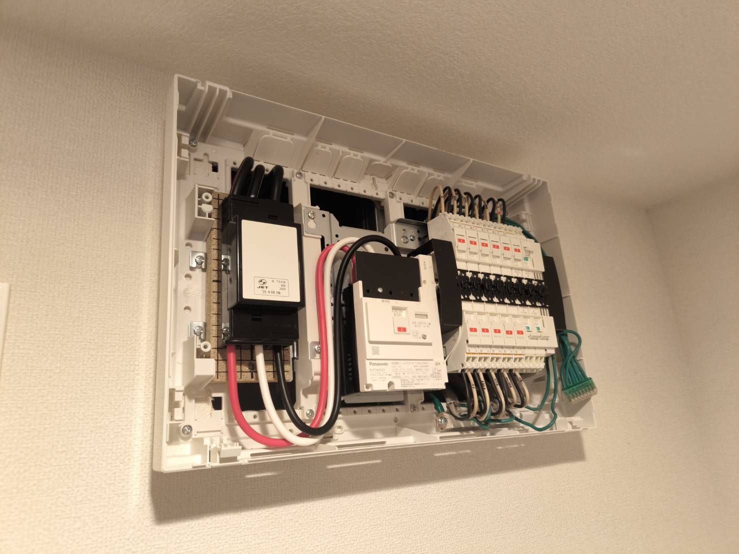 最新タイプの分電盤は、各回路に専用の漏電ブレーカーが搭載されており、異常があった場合も即座に遮断。火災や感電事故のリスクを軽減します。