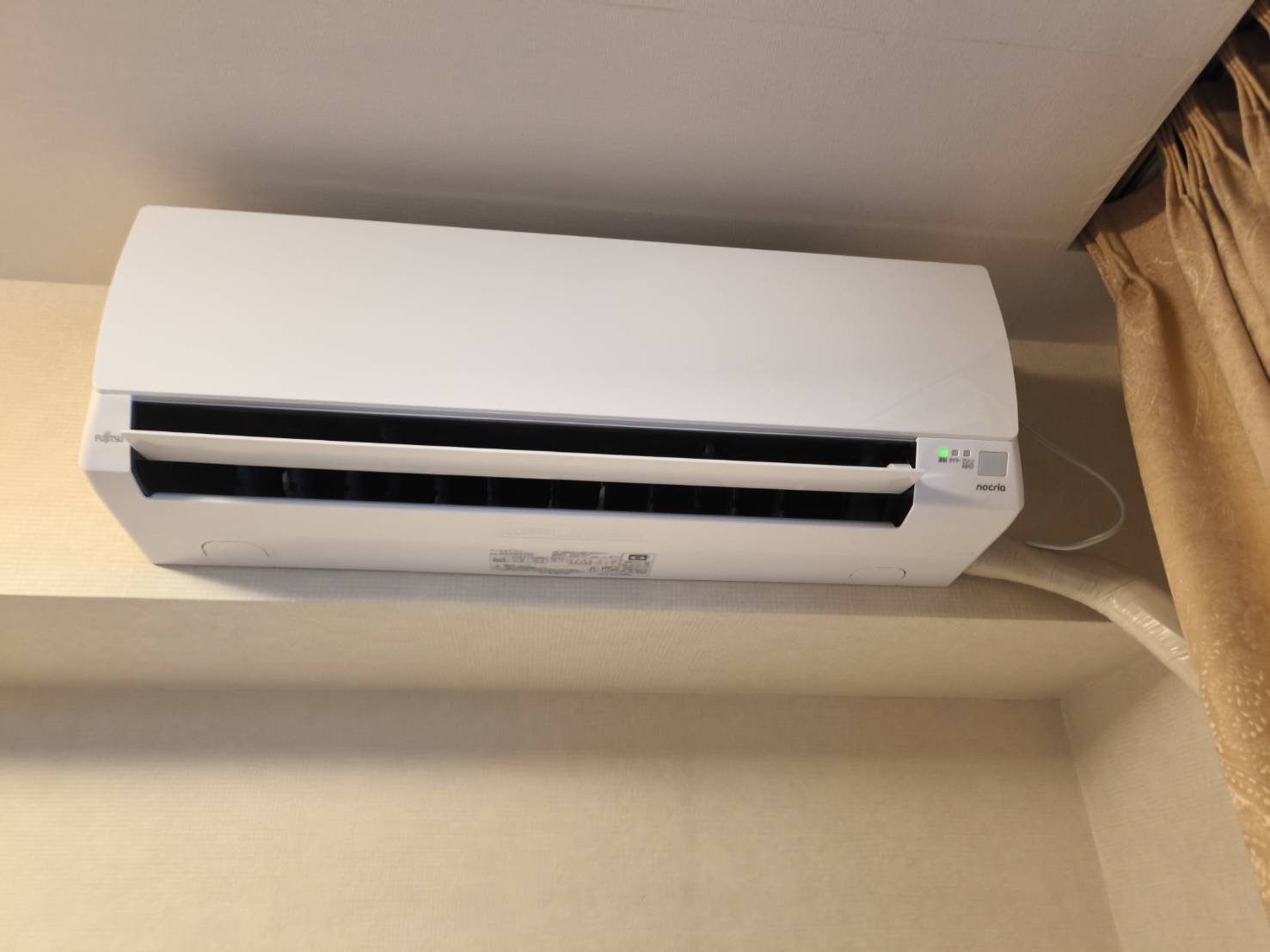 設置場所はリビングルームで、バルコニー側の壁に穴がある既存配管を利用できる環境でした。